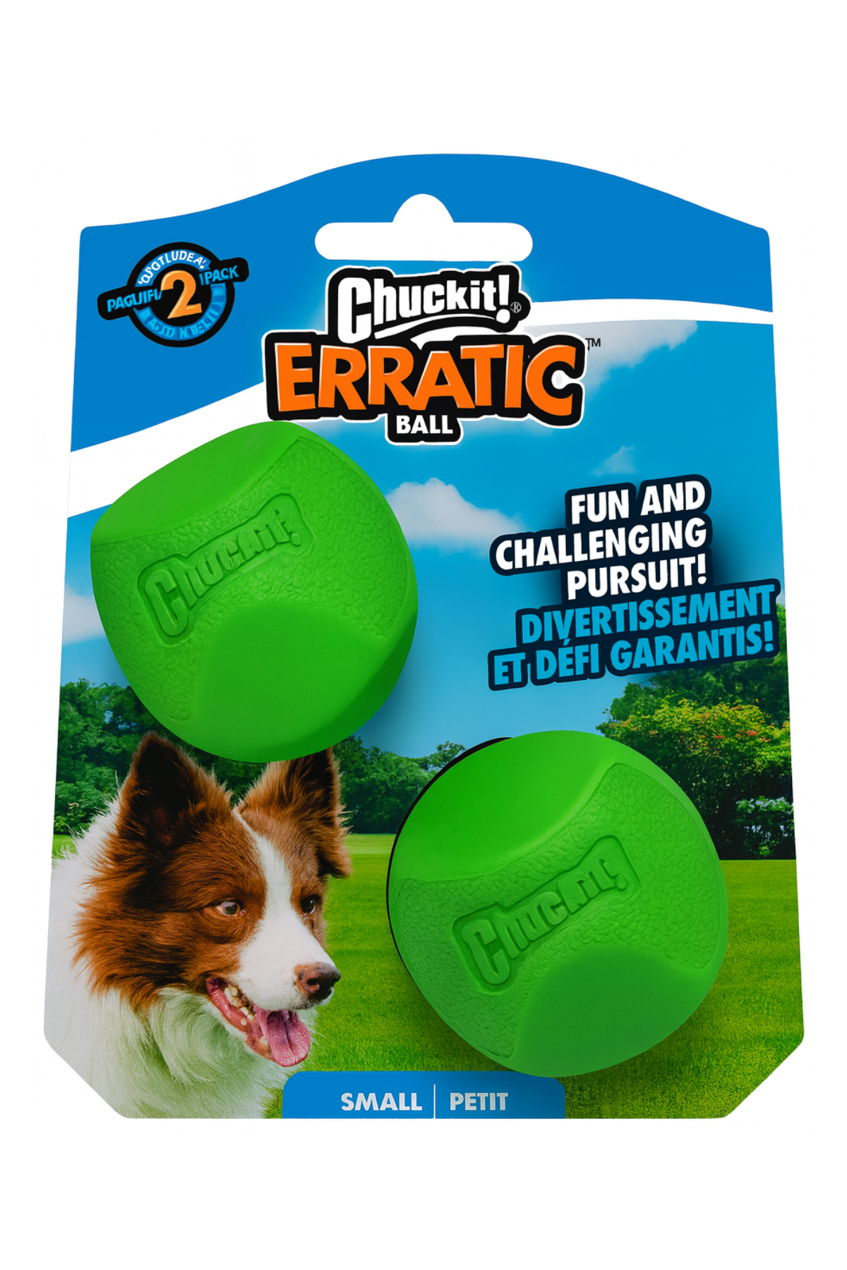 Köpeğinizin oyun keyfini ikiye katlayın! Chuckit! Erratic Ball 2’li Küçük Boy, özel şekilli tasarımı sayesinde düzensiz zıplar ve köpeğiniz için daha eğlenceli ve heyecanlı bir oyun deneyimi sunar.