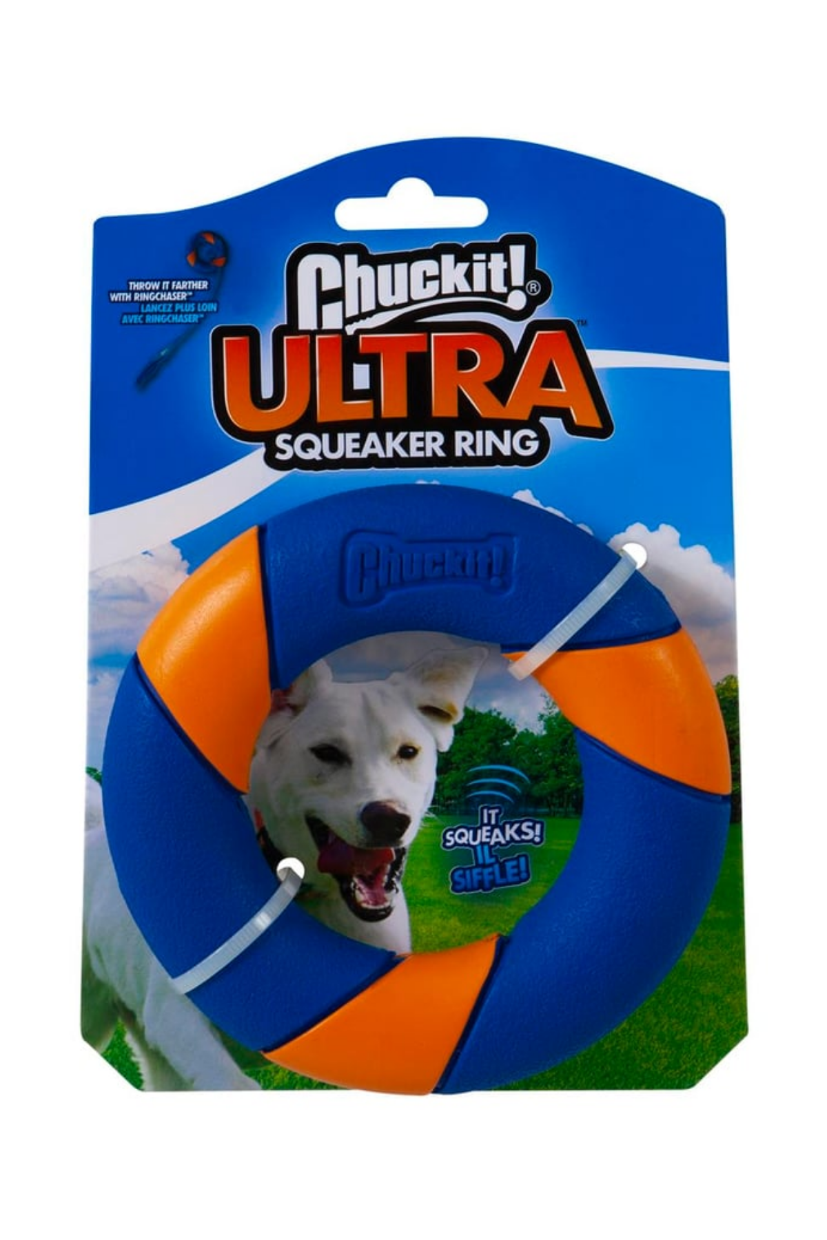 Köpeğinizin enerjisini atarken eğlenceli ve interaktif oyunlar oynayın! Chuckit! Ultra Squeaker Ring, sesli tasarımıyla köpeğinizin dikkatini anında çeker ve oyun deneyimini daha heyecanlı hale getirir.