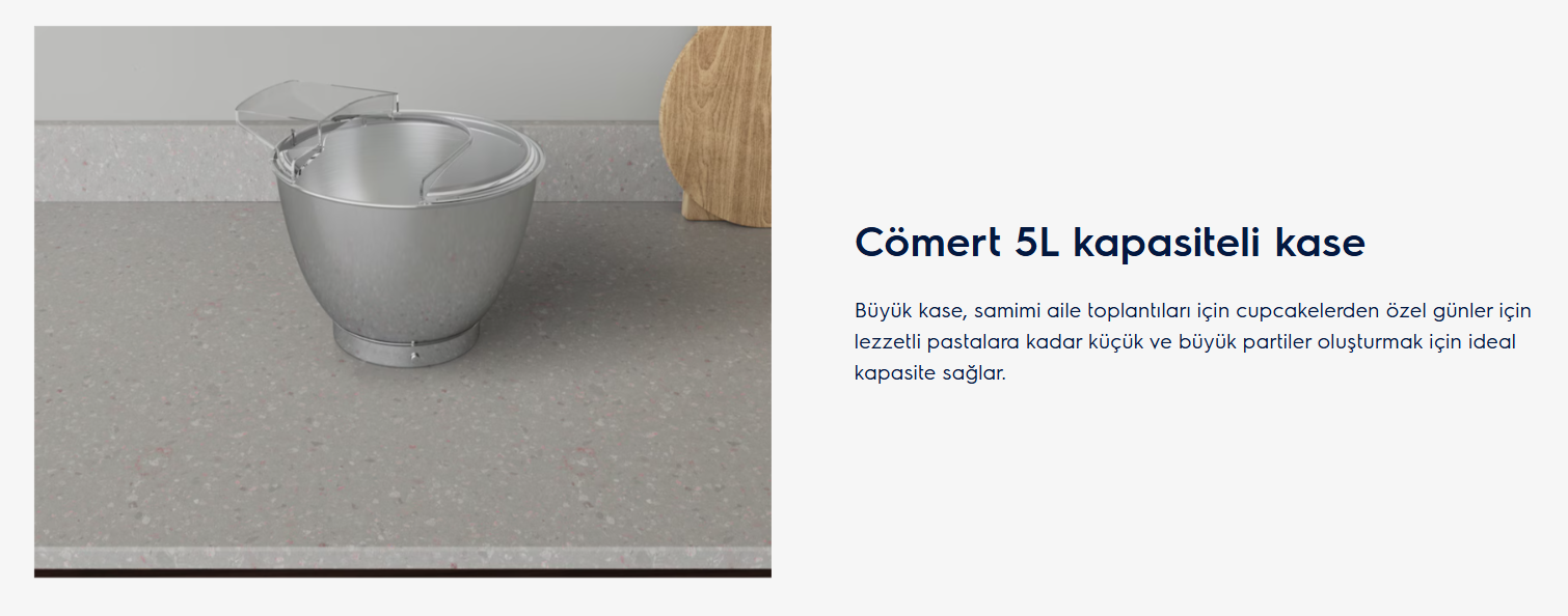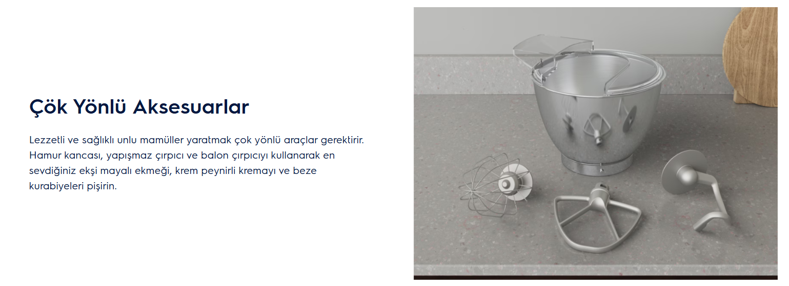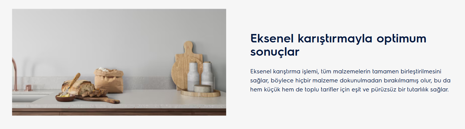 Ekmekten keklere ve aradaki her şeye, Create 5 Mutfak Şefi her seferinde lezzetli unlu mamuller üretmenize yardımcı olur. Eksenel karıştırma hareketi ve güçlü motoru, optimum ve tutarlı pişirme sonuçları sağlar. Dayanıklı döküm gövdeli Create 5 Kitchen makinesi, günlük yemeklerden ziyafete kadar kalabalık işlerin üstesinden rahatça gelir
