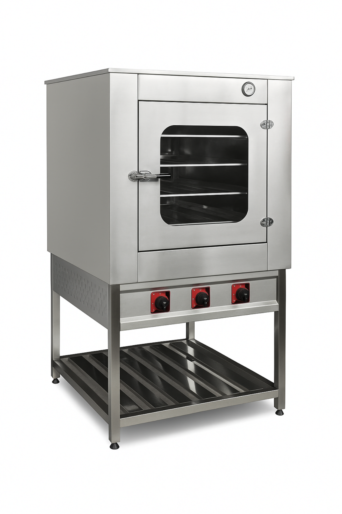 Dayanıklı paslanmaz çelik gövde, uzun ömürlü kullanım ve kolay temizlik sağlar. Hızlı ısınma özelliği sayesinde zaman tasarrufu sağlar ve yoğun işletme koşullarında kesintisiz performans sunar. Pastaneler, börekçiler, fırınlar ve kafeler için profesyonel çözümdür.