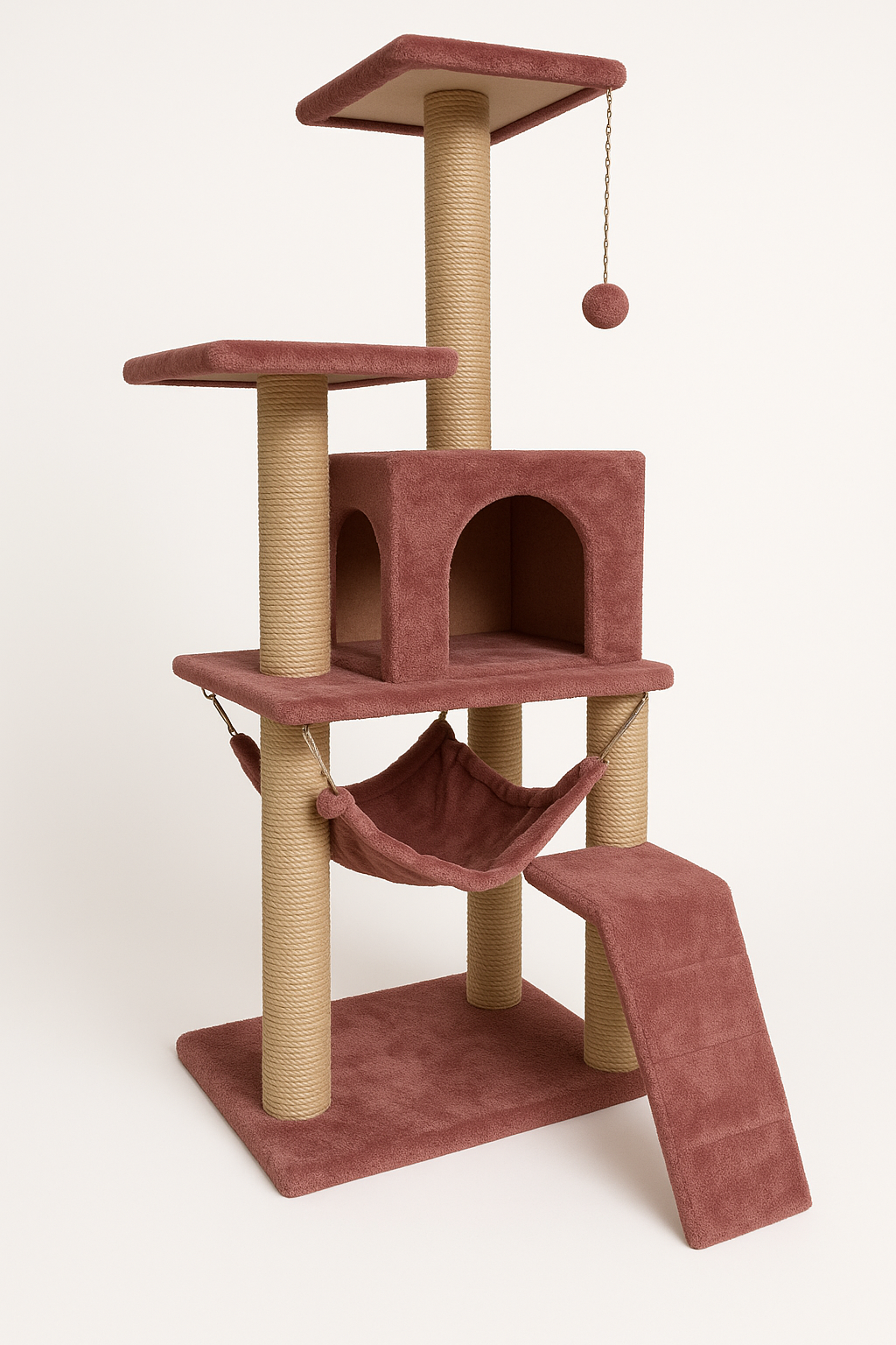 Reyo Pet B-07 Hamaklı Yuvalı Lüx Kedi Tırmalama Oyun Evi Gül Kurusu (75142)