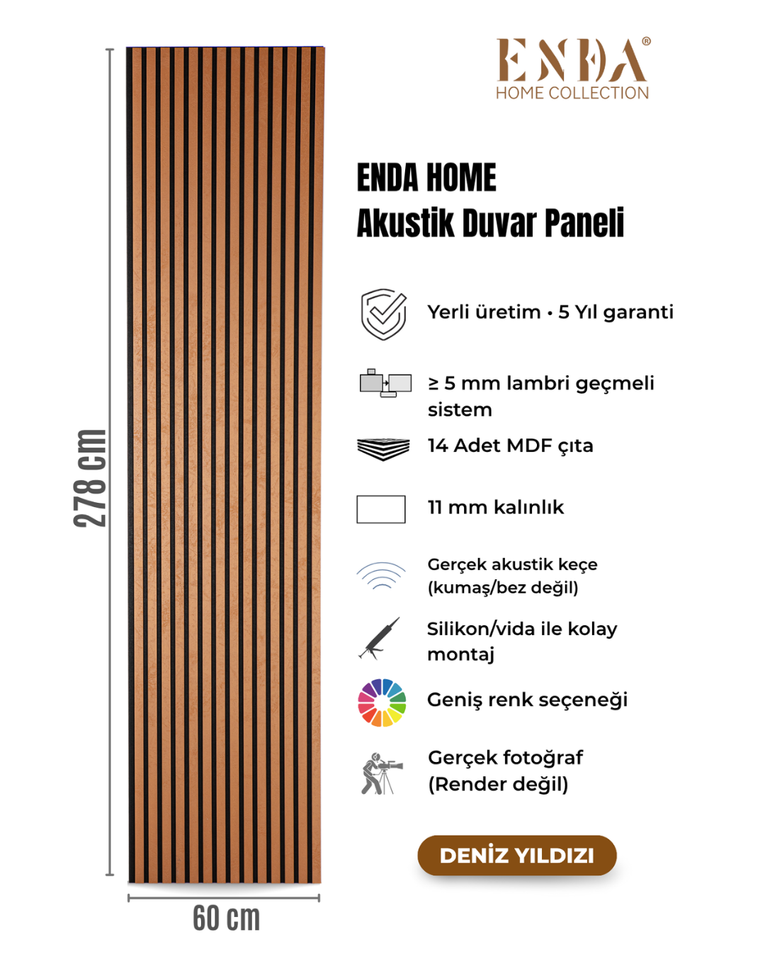 Enda Home MDF Akustik Duvar Paneli 60 x 278cm Deniz Yıldızı