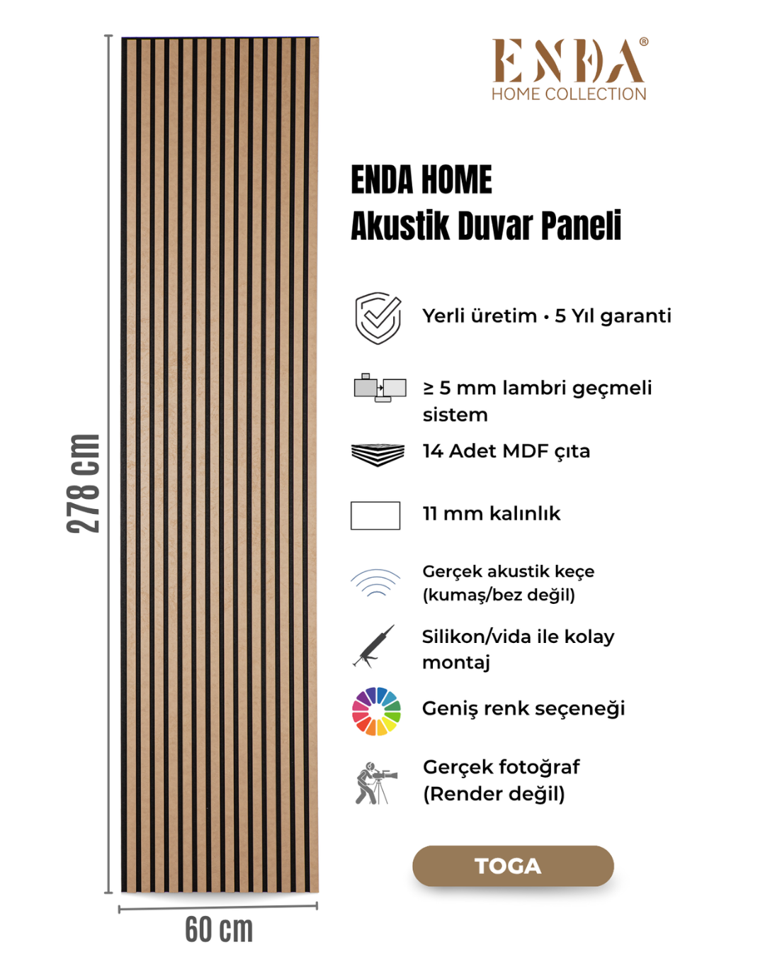 Enda Home MDF Akustik Duvar Paneli 60 x 278cm Toga