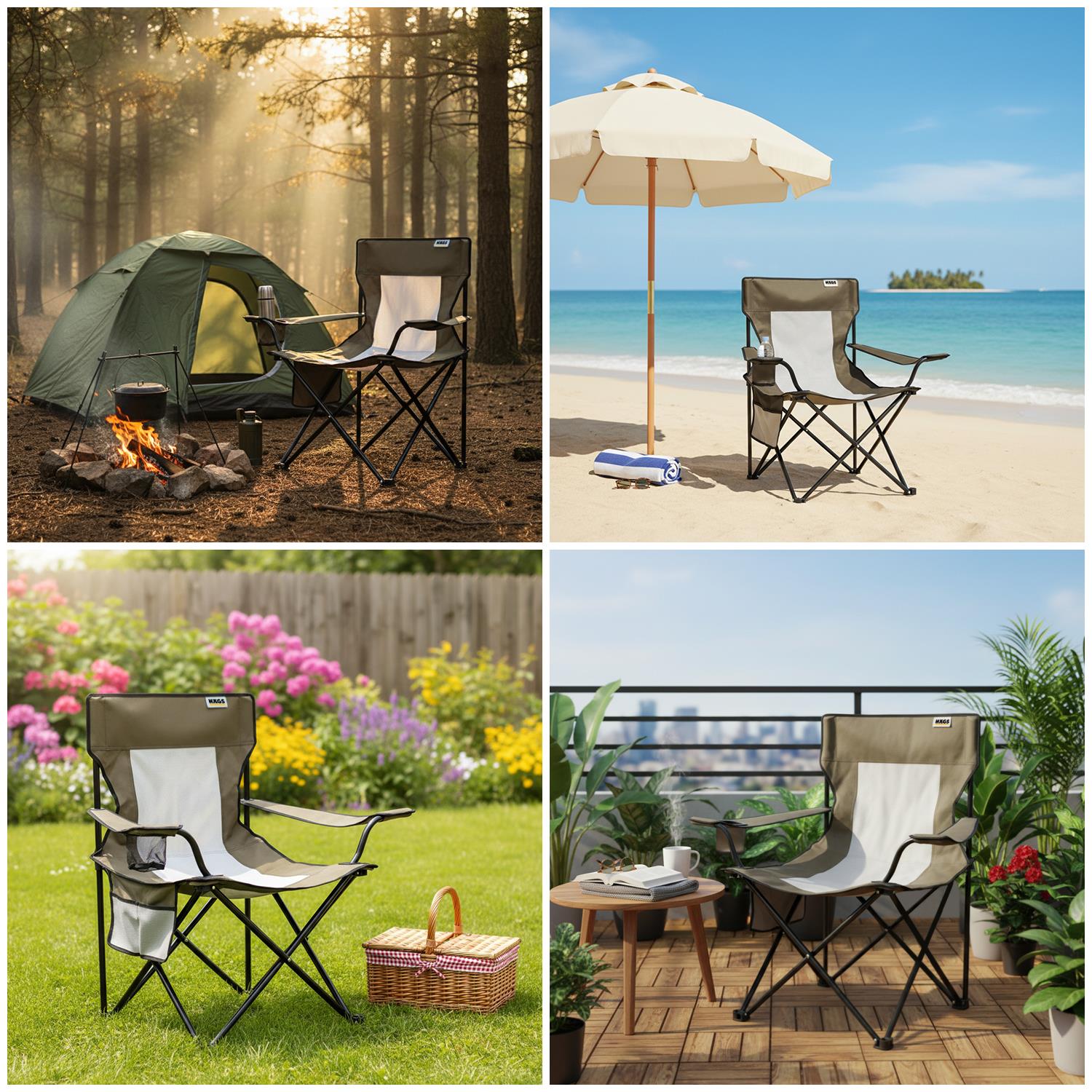 Haegs kamp sandalyesi birkaç saniye içinde kolayca açılıp kapanabilen katlanabilir yapıya sahiptir. Kullanılmadığında kompakt hale gelir ve taşıma çantasına yerleştirilebilir. Sağlam naylon taşıma çantası sayesinde taşıması oldukça kolaydır.