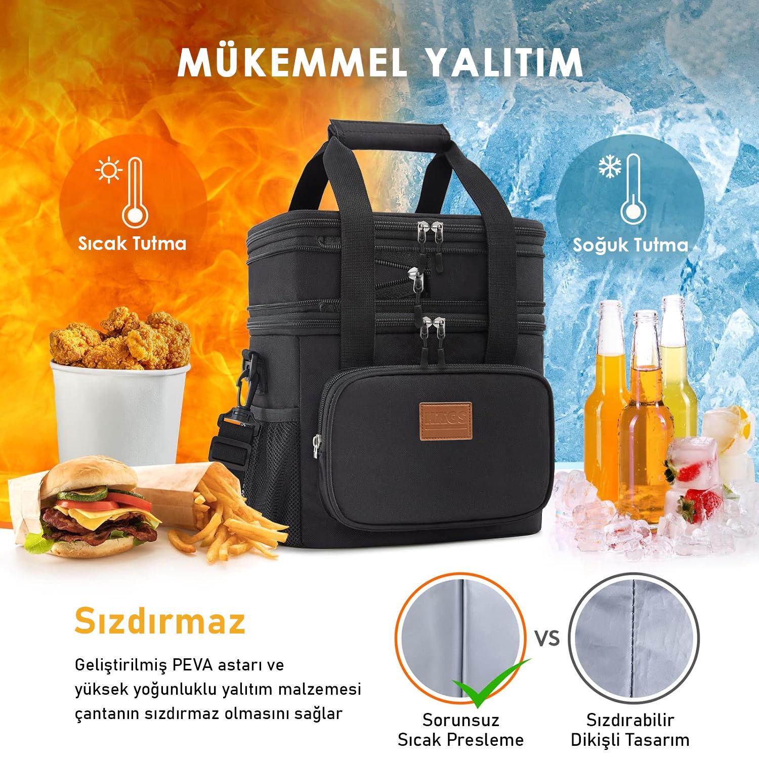 İki ayrı bölmesi sayesinde yiyecek ve eşyalarınızı düzenli bir şekilde saklayabilirsiniz. Islak ve kuru gıdaları ayrı bölmelerde taşıyarak daha düzenli ve hijyenik kullanım sağlayabilirsiniz. Bu özellik özellikle kamp, piknik ve seyahatlerde büyük kolaylık sağlar.