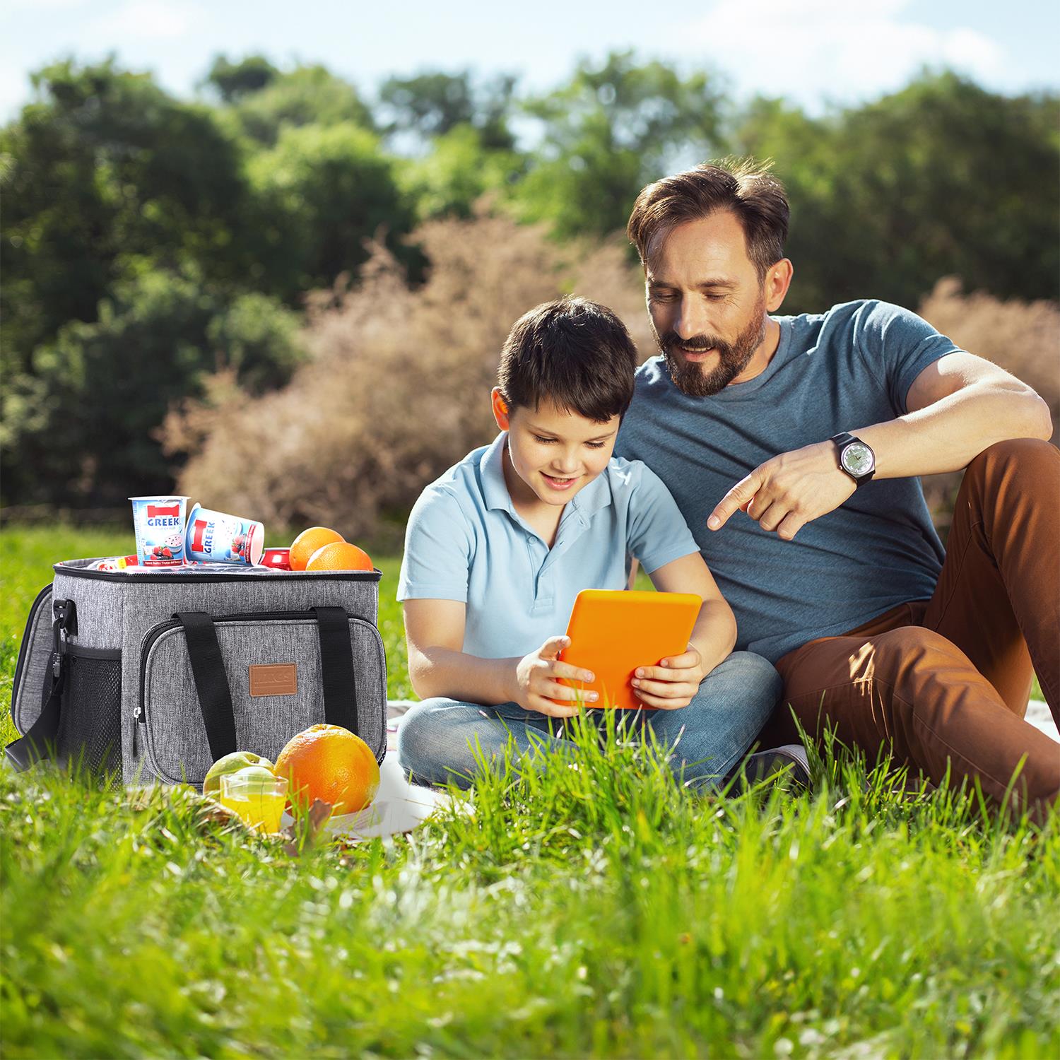Haegs Körüklü Termal Buzluk Kamp Çantası 21L – Çift Bölmeli Yalıtımlı Termos Çanta (Gri)
