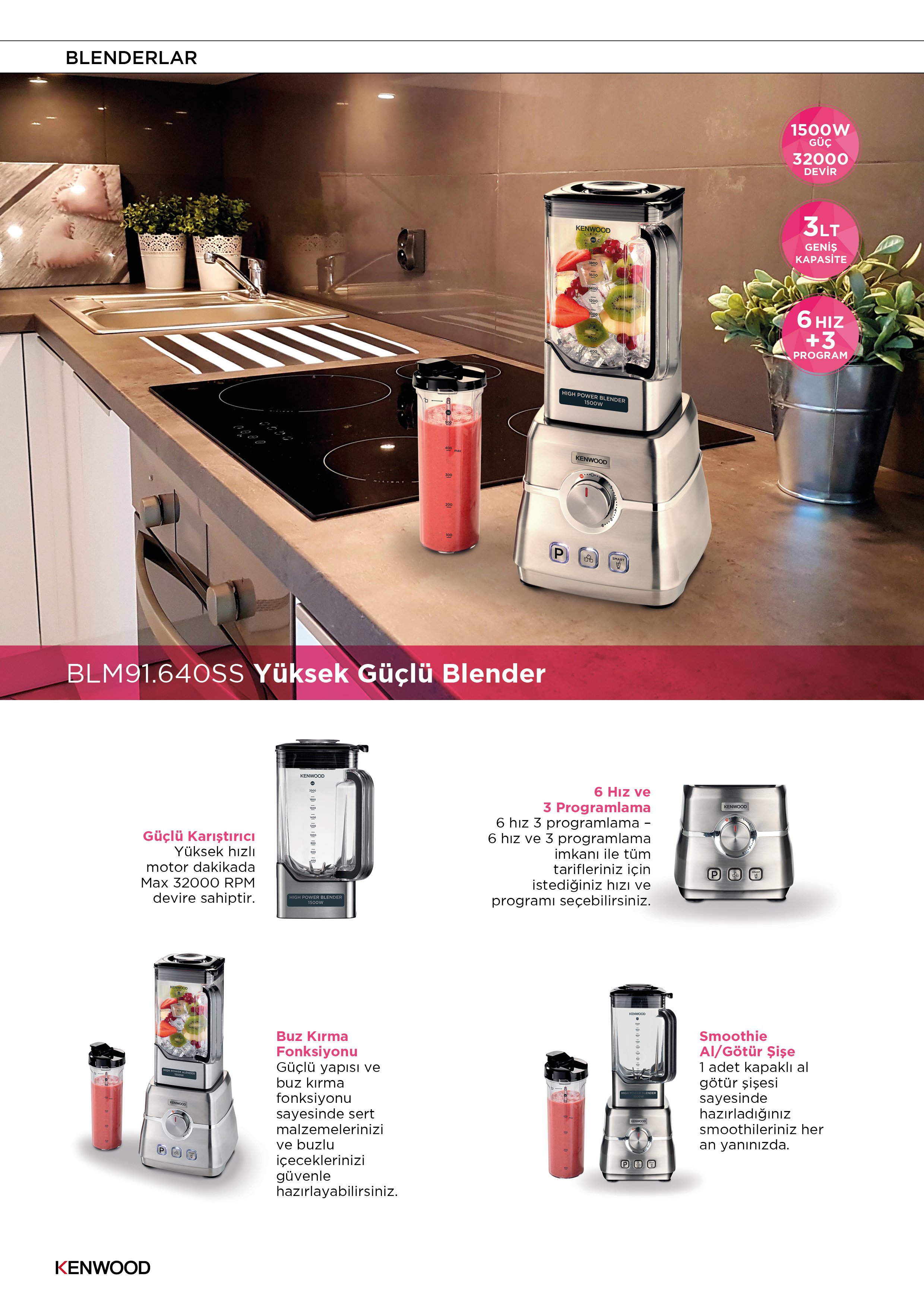 ▪ 1500 Watt Güçlü Karıştırıcı Yüksek hızlı motor dakikada Max 32000 RPM devire sahiptir. ▪ 6 Hız ve 3 Programlama Tüm tarifleriniz için istediğiniz hızı ve programı seçebilirsiniz. ▪ Buz Kırma Fonksiyonu Güçlü yapısı ve buz kırma fonksiyonu sayesinde sert malzemelerinizi ve buzlu içeceklerinizi güvenle hazırlayabilirsiniz. ▪ Smoothie Al/Götür Şişe 1 adet kapaklı al götür şişesi sayesinde hazırladığınız smoothieleriniz her an yanınızda.