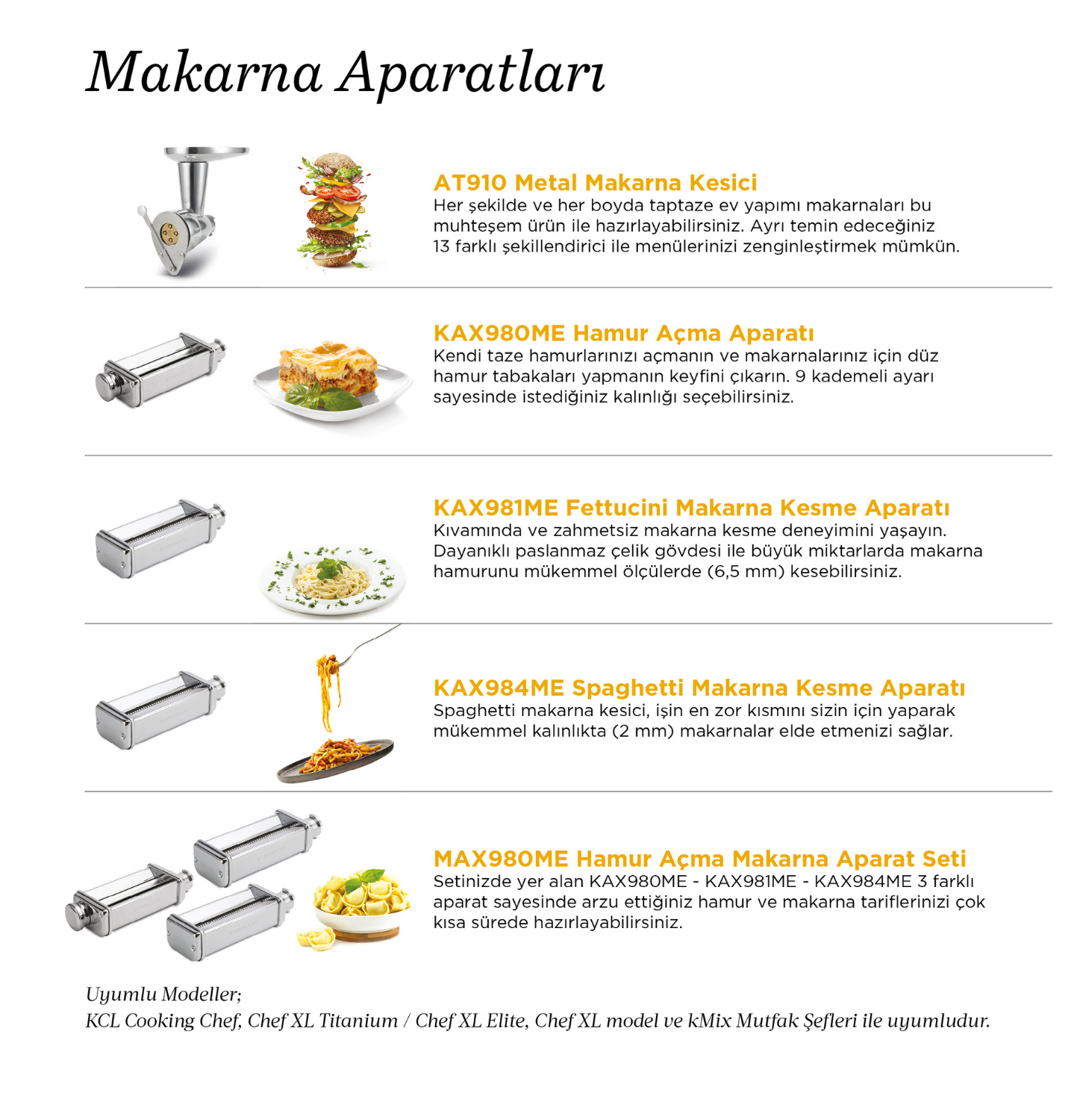 * Bu aparat tek başına kullanılamaz, aşağıda yer alan uyumlu Kenwood mutfak şefi serilerine takılarak kullanılabilir.