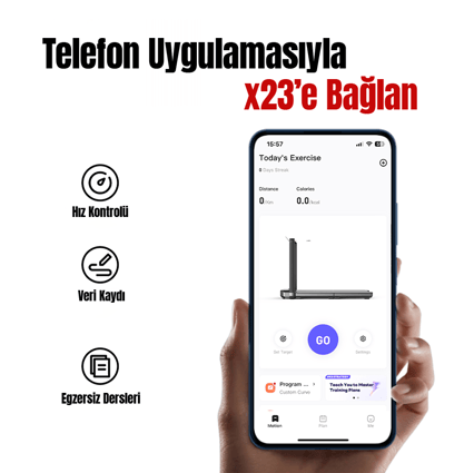 WalkingPad X23 ile hedef parmaklarınızın ucunda! Mobil app üzerinden hız kontrolü yapabileceğiniz X23 ile tüm verilerinizi anında kaydedebilir, uzaktan hız kontrolü yapabilir, kişisel egzersiz derslerine katılabilirsiniz. Günlük egzersizlerinizi kişiselleştirerek daha etkili sonuçlar alabilir ve hedeflerinize hızla ulaşabilirsiniz.