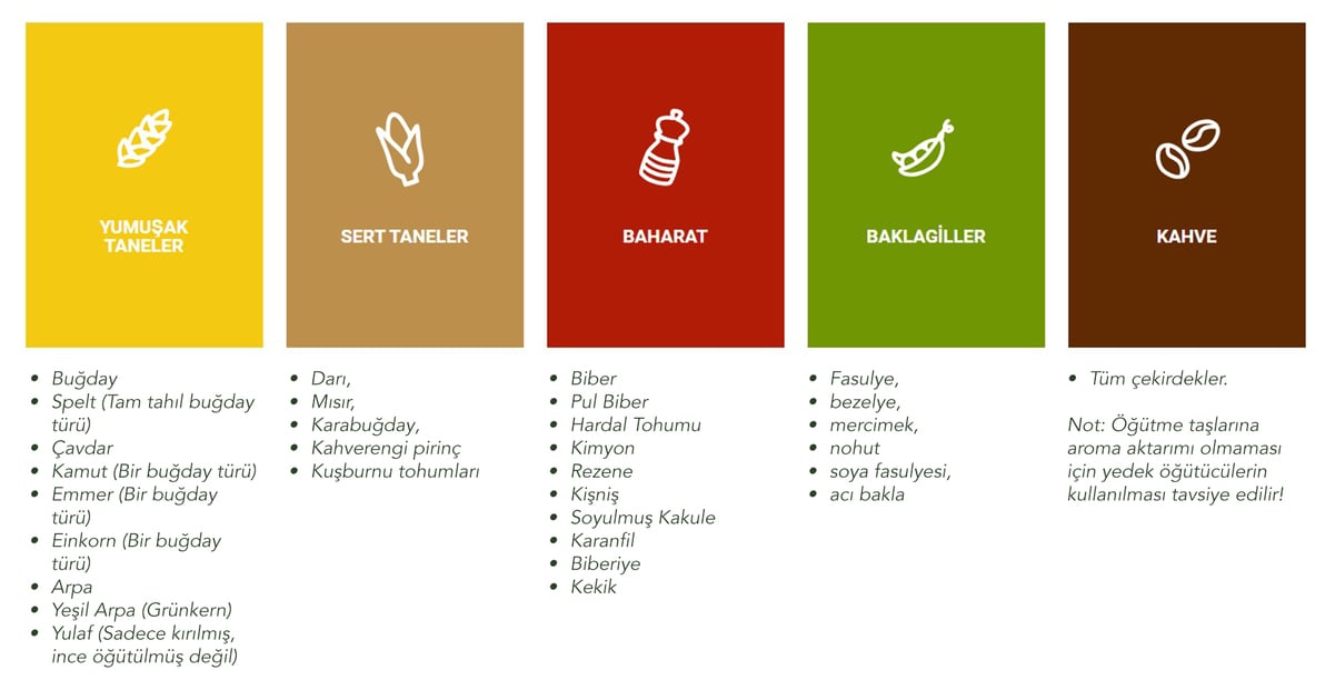 - Öğütme Taşlarının Çapı (Değerli Korindon Seramik): 85 mm