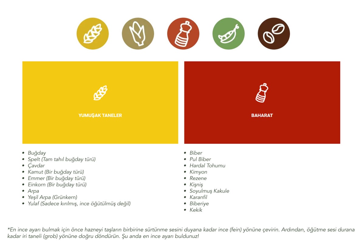 Öğütme Taşlarının Çapı (Değerli Korindon Seramik): 75 mm