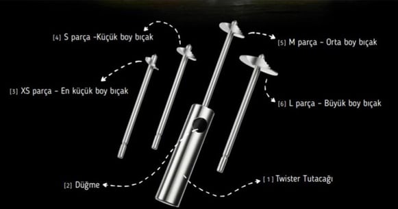1.6 cm, 2.3 cm, 2.9 cm, 3.9 cm çapında sağlam paslanmaz çelik uçtan yapılmış bıçaklar nerdeyse tüm katı meyve ve sebzeleri oyabilirsiniz.