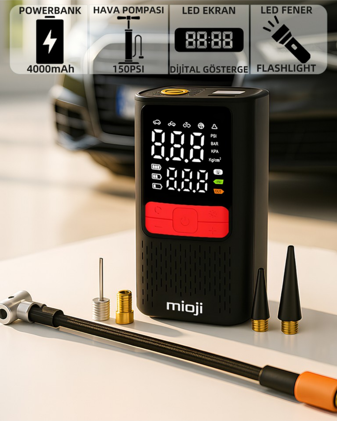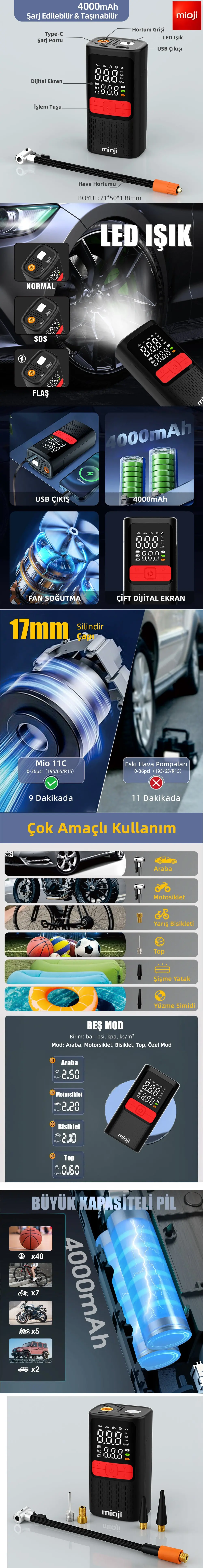 Mioji Mio 11C 4000mAh Taşınabilir Hava Pompası + Powerbank - Taşıma Çantası Hediye