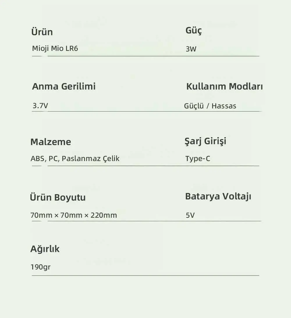Mioji Mio LR6 Dijital Yeşil Tüy Toplama Makinesi (77382)