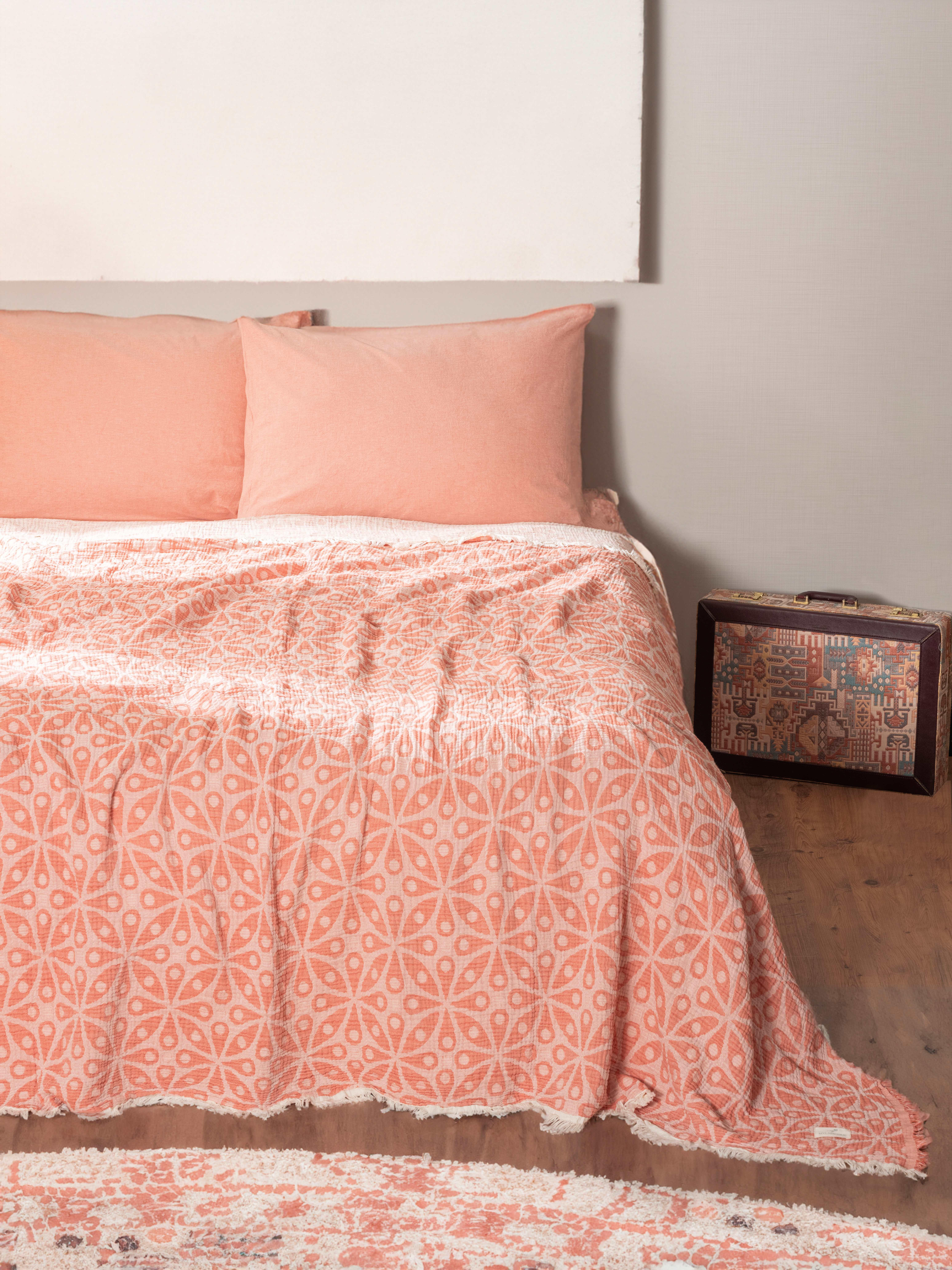 Mylasa Home Çift Kişilik %100 Organik Pamuk Müslin Yatak Örtüsü Damla Puantiye Desenli Kiremit (77891)