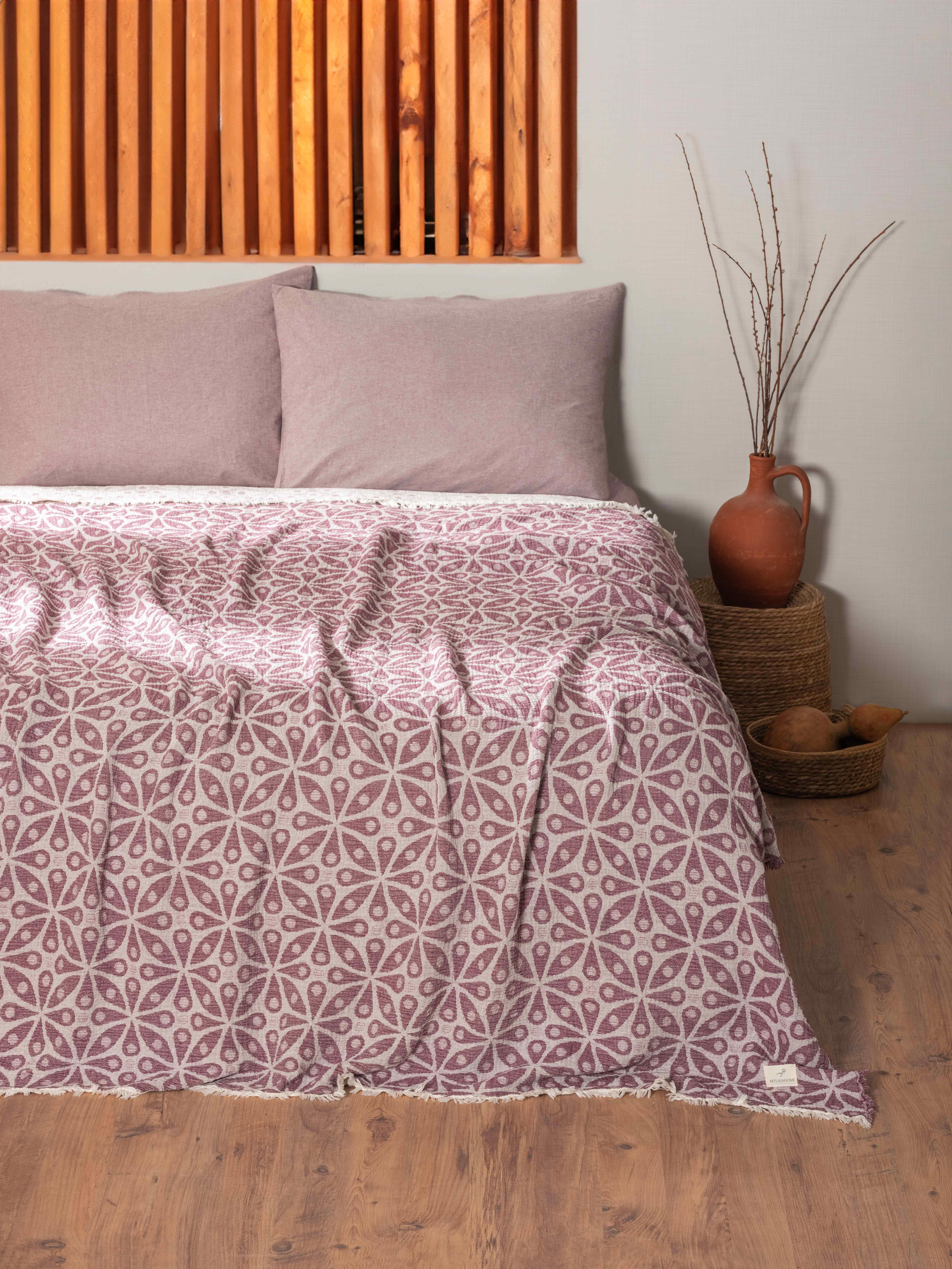Mylasa Home Çift Kişilik %100 Organik Pamuk Müslin Yatak Örtüsü Damla Puantiye Desenli Mor (77903)