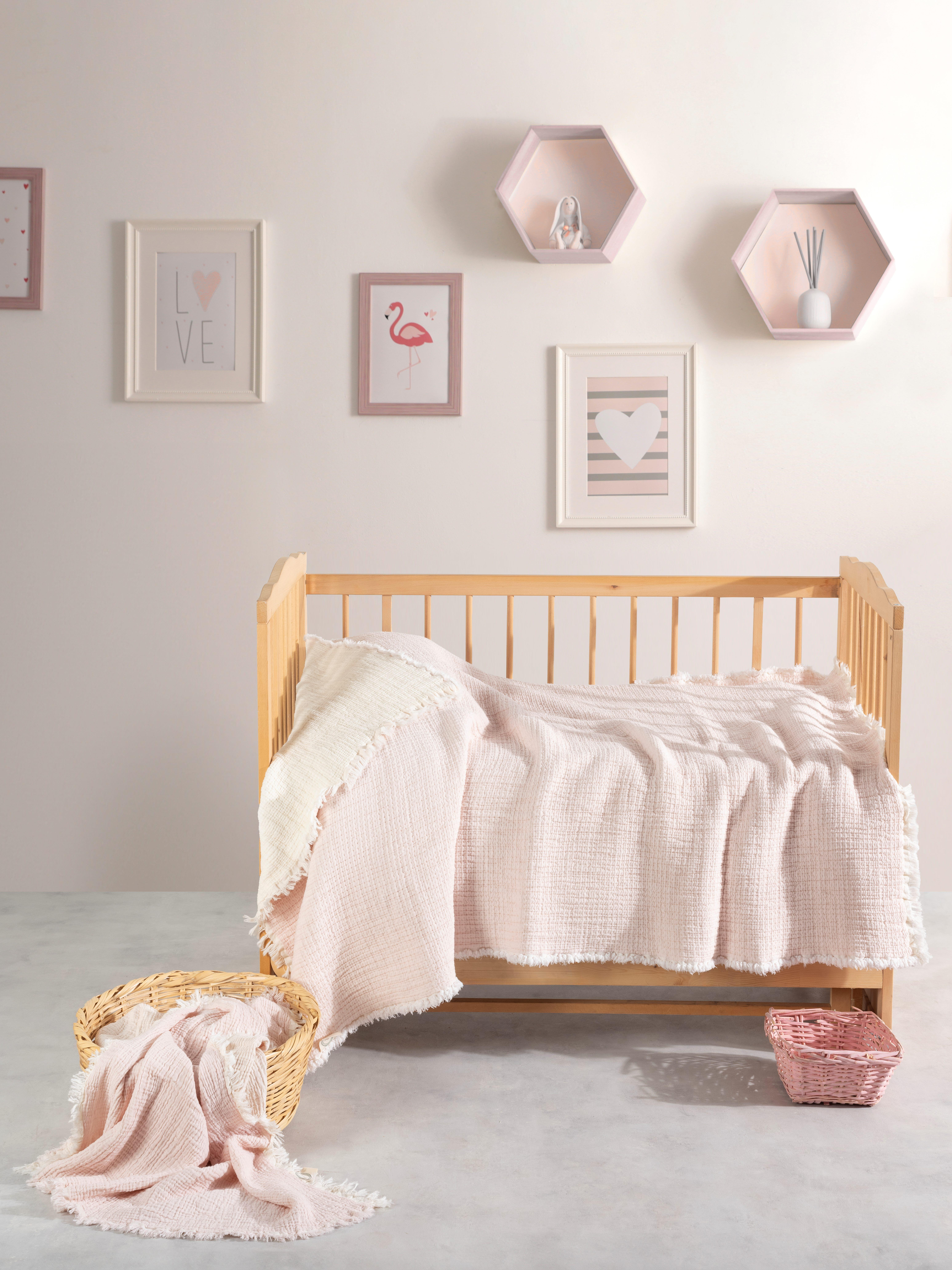 Kosha Serisi Müslin Pudra Bebek Yorganı, bebeğinizin narin cildine özel bir dokunuş sunarak konfor ve zarafeti bir araya getirir. 100 x 150 cm ölçüleriyle tasarlanan bu müslin bebek battaniyesi, yumuşak dokusuyla her anında sıcaklık ve huzur vaat eder. Doğadan ilham alan müslin kumaşı, hava geçirgenliği sayesinde bebeğinizin hassas cildini nazikçe sararken, terlemeyi önleyerek tüm mevsimlerde konforlu bir kullanım sağlar.
