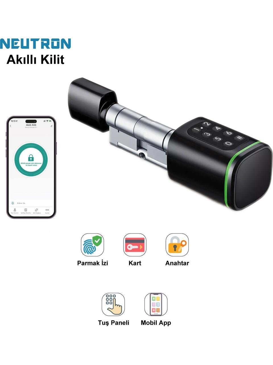 NEUTRON Parmak Izi, Anahtarlı, Kartlı Ve Uzaktan Kontrollü Akıllı Kapı Kilidi - App Ile Kontrol