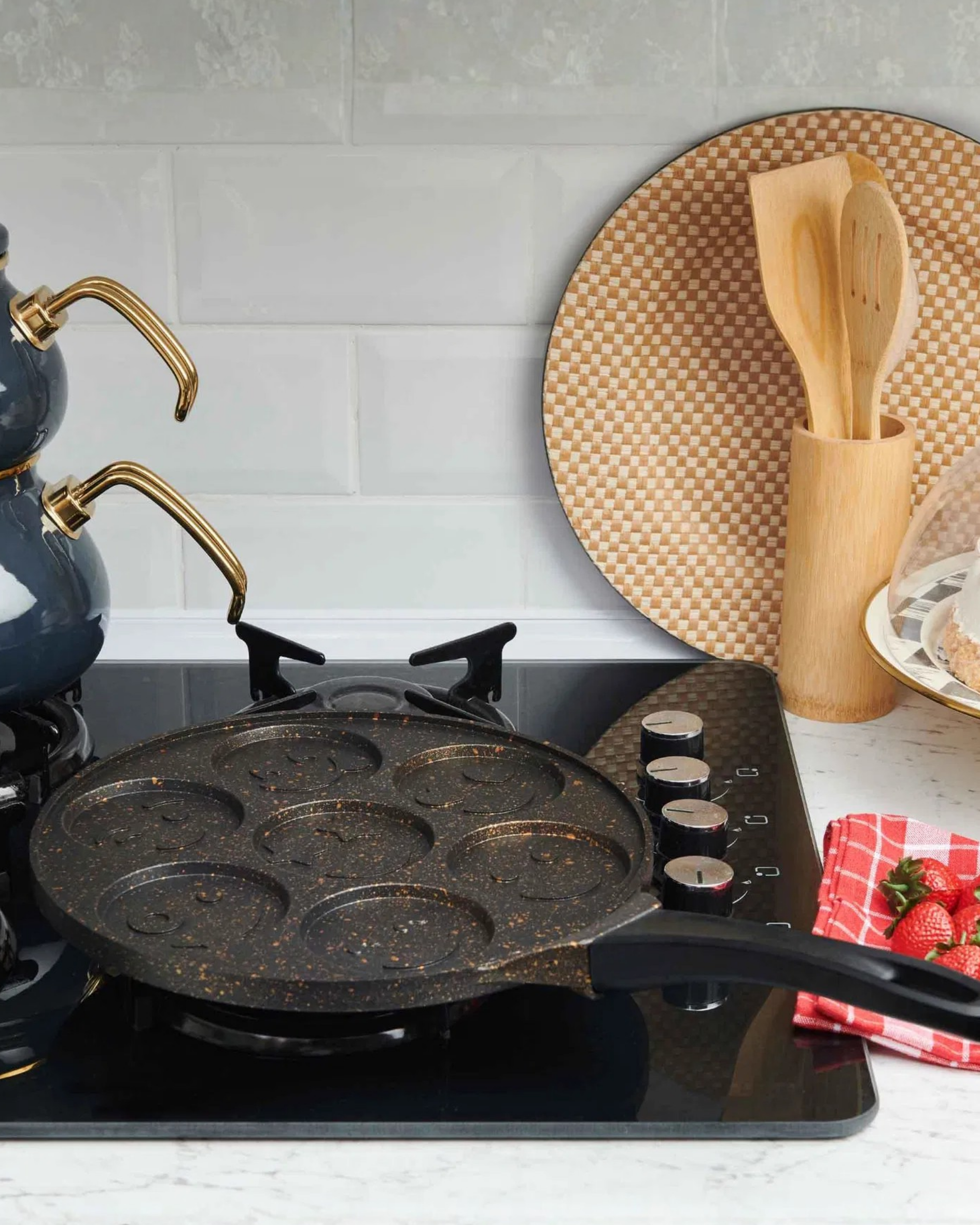 Kahvaltılara neşe katın! Dayanıklı döküm yapısı sayesinde eşit ısı dağılımı sağlar, her pankek mükemmel pişer. 7 farklı emoji deseniyle çocuklar ve yetişkinler için eğlenceli sunumlar hazırlayın. Yapışmaz yüzeyiyle kolay kullanım, lezzet dolu sonuçlar!