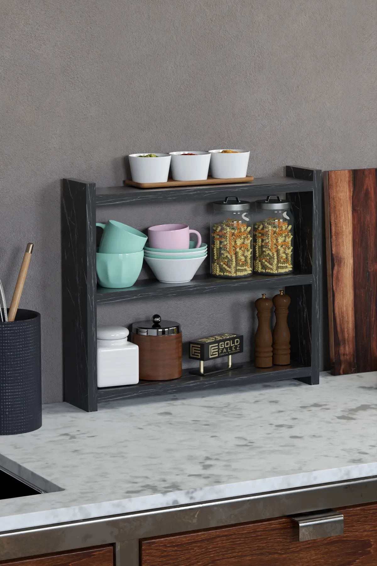 Reyo Falez Mutfak Rafı Organizer Banyo Rafı Çok Amaçlı Düzenleyici Tezgah Üstü Raf Siyah Mermer Desen (77531)