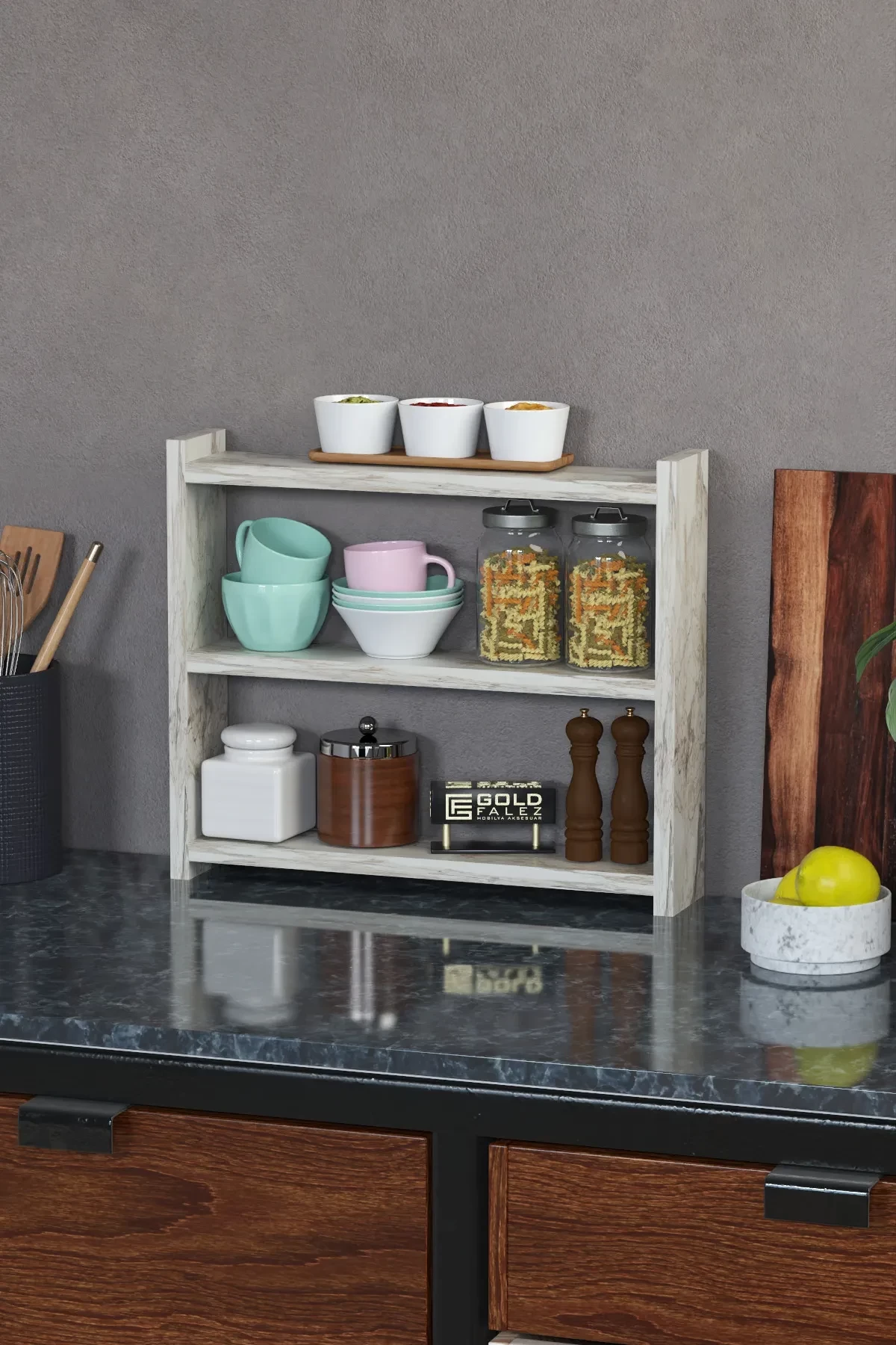 Reyo Falez Mutfak Rafı Organizer Banyo Rafı Çok Amaçlı Düzenleyici Tezgah Üstü Raf Beyaz Mermer Desen (77531)