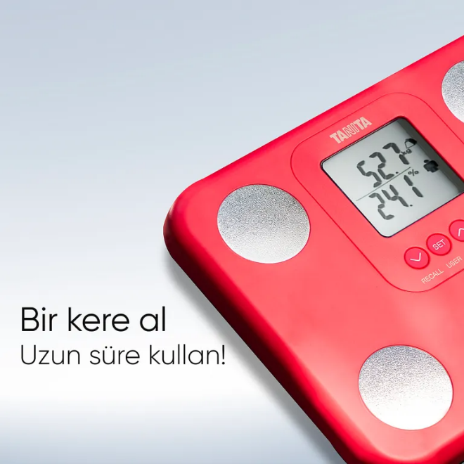 Taşınabilir kompakt hafif yapısı sayesinde dilerseniz seyahate gittiğinizde dilerseniz banyodan salona çok rahat şekilde taşımanıza elverişlidir. Tanita vücut analiz baskülü pembe 150 kg taşıma kapasitesine sahiptir. Japon teknolojisine sahip bu sevimli cihazın Beyaz, Siyah, Neon Yeşil, Neon Pembe olarak 4 farklı renk alternatifiyle kullanıcının beğenisini kazanıyor. Canlı renkleri sayesinde cihazın dikkat çekiliciliği sayesinde evinizin havasını değiştireceğine emin olabilirsiniz.