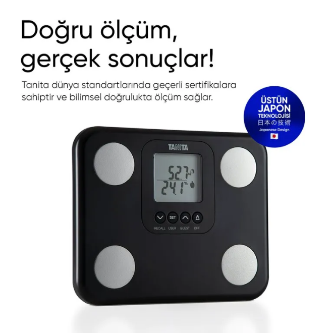 Taşınabilir kompakt hafif yapısı sayesinde dilerseniz seyahate gittiğinizde dilerseniz banyodan salona çok rahat şekilde taşımanıza elverişlidir. Tanita vücut analiz baskülü siyah 150 kg taşıma kapasitesine sahiptir. Japon teknolojisine sahip bu sevimli cihazın Beyaz, Siyah, Neon Yeşil, Neon Pembe olarak 4 farklı renk alternatifiyle kullanıcının beğenisini kazanıyor. Canlı renkleri sayesinde cihazın dikkat çekiliciliği sayesinde evinizin havasını değiştireceğine emin olabilirsiniz.