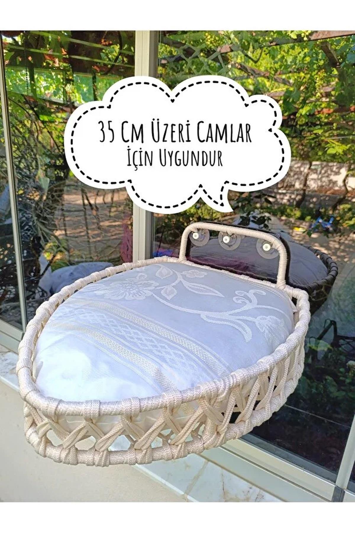 Tasaryum Kedi ve Köpek Vantuzlu Cam Yatağı, Puf Minderli Kedi Hamak, Kedi Yatağı Krem (77512)