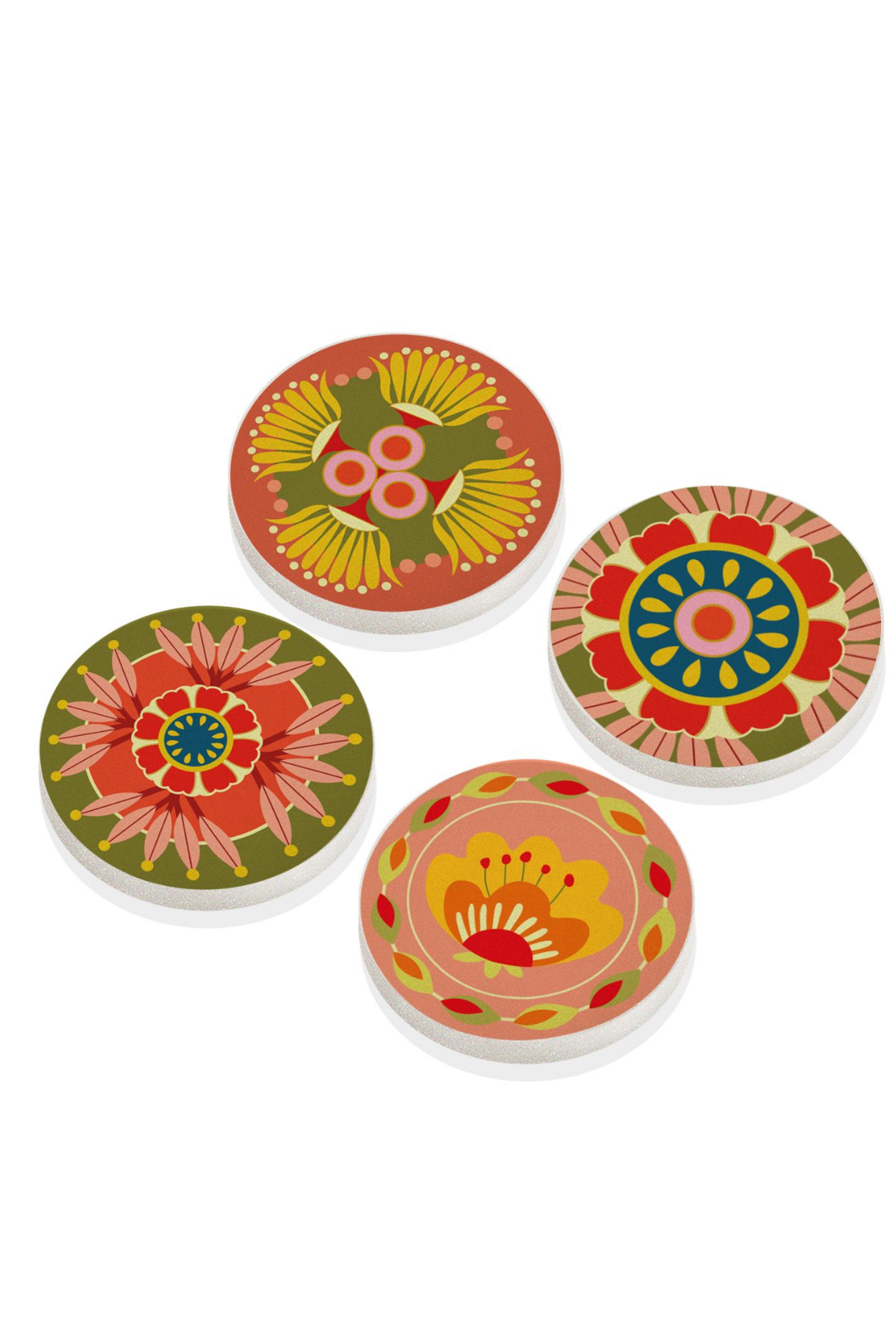 The Mia Fiore Taş Bardak Altlığı Yuvarlak 4lü Set