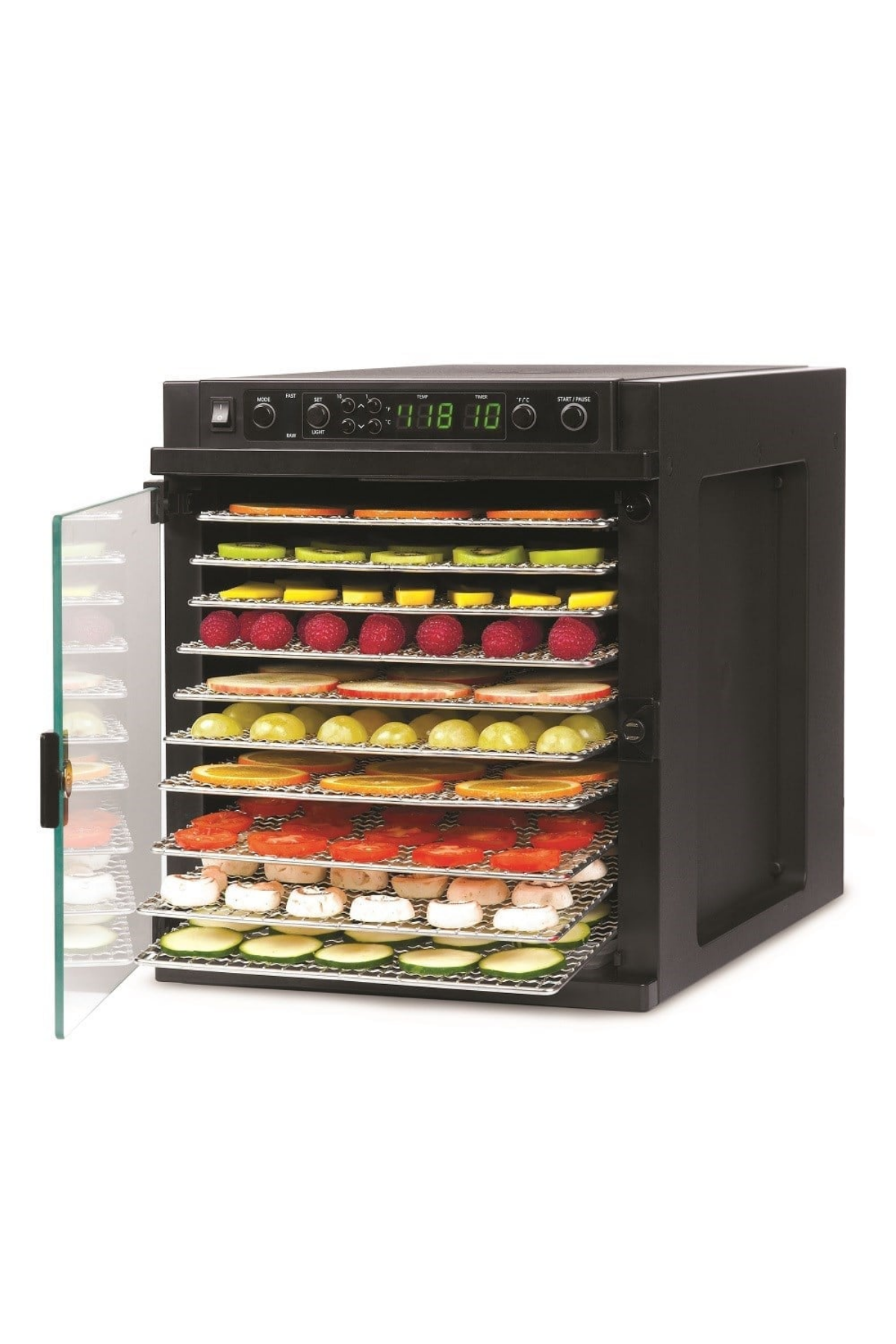 Tribest Sedona Express 25 Lt. Meyve ve Sebze Kurutma Makinesi, elmadan kabağa, ekmekten ezmeye, krakerden kuru ete (jerky) tüm kuru ürünleri hazırlar. Sedona Express, İki Aşamalı Ardışık Sıcaklık Zamanlayıcısına (TST) sahiptir.